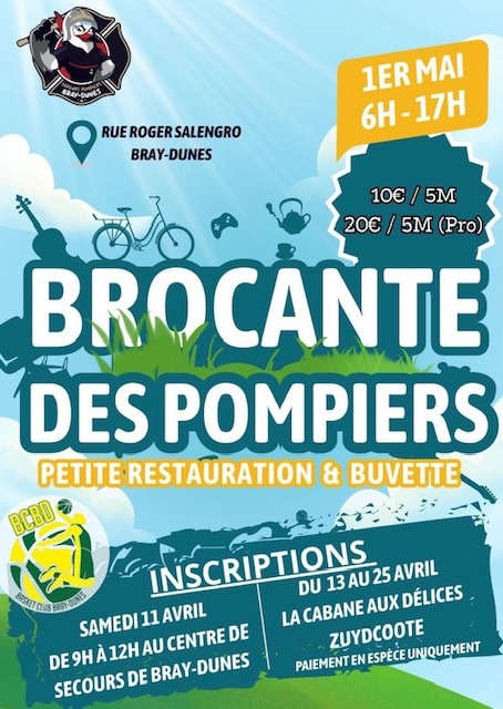 La Brocante de Bray-Dunes, organisée par les Pompiers, aura lieu dans la rue de la Brasserie des Dunes de Flandre « rue Roger Salengro »…